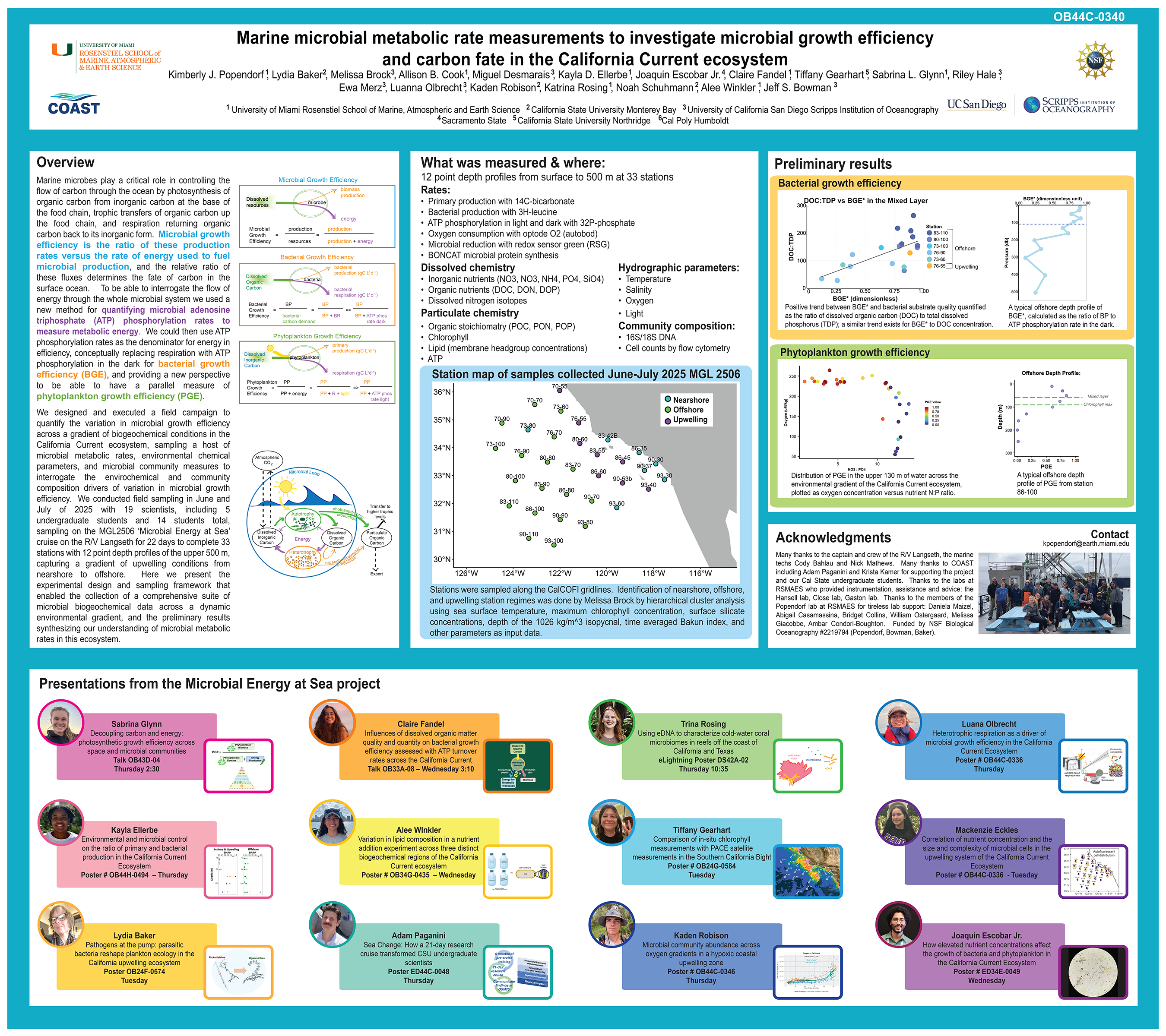 Dissolved Organic Carbon (DOC) comprises a complex pool of molecules central to global nutrient cycling. Marine heterotrophic bacteria utilize DOC as a primary energy source for respiration and to sustain or build biomass. The balance between these pathways determines the efficiency of the microbial loop, thus the magnitude of DOC available for export. This balance by heterotrophic bacteria is captured by bacterial growth efficiency (BGE), yet the extent to which DOC quantity and substrate quality regulate BGE remains unclear. DOC concentration represents substrate quantity, while deviations from Redfield stoichiometry reflect nutrient imbalances that may limit microbial metabolism through substrate quality. This study investigates how BGE varies with DOC quantity and substrate quality across diverse biogeochemical provinces of the California Current Ecosystem, spanning upwelling and offshore oligotrophic zones, sampled in the summer of 2025. Traditional BGE estimates rely on bacterial production rates (3H-leucine incorporation) and respiration rates (oxygen consumption). However, these methods may fail to capture the diversity of microbial energy use and are often limited by logistical constraints in the field. Therefore, we apply a recently developed method that quantifies energy turnover rates, measured via adenosine triphosphate (ATP) turnover rates using brief incubations with radiolabeled 32P-phosphate. This ATP-based approach provides a more direct and rapid way to measure the energetic denominator underlying BGE. By examining the links between DOC quantity and substrate quality and BGE in this manner, this work highlights the diversity in microbial dynamics across key environments reflective of the global ocean.